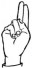 На ћирилици написано КОСТА ДАНГИЋ састоји се из 11 слова [?]. Исписано ћириличном једноручном азбуком за глувонеме: